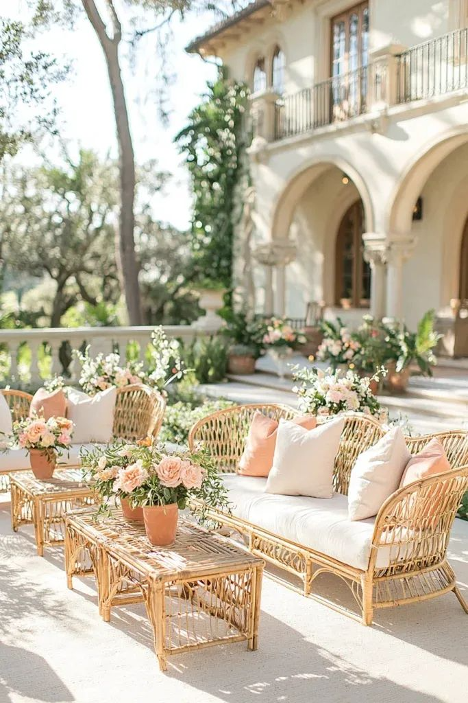 Premium rattan sofa and table set with soft cushions, designed for airy and bright living spaces.