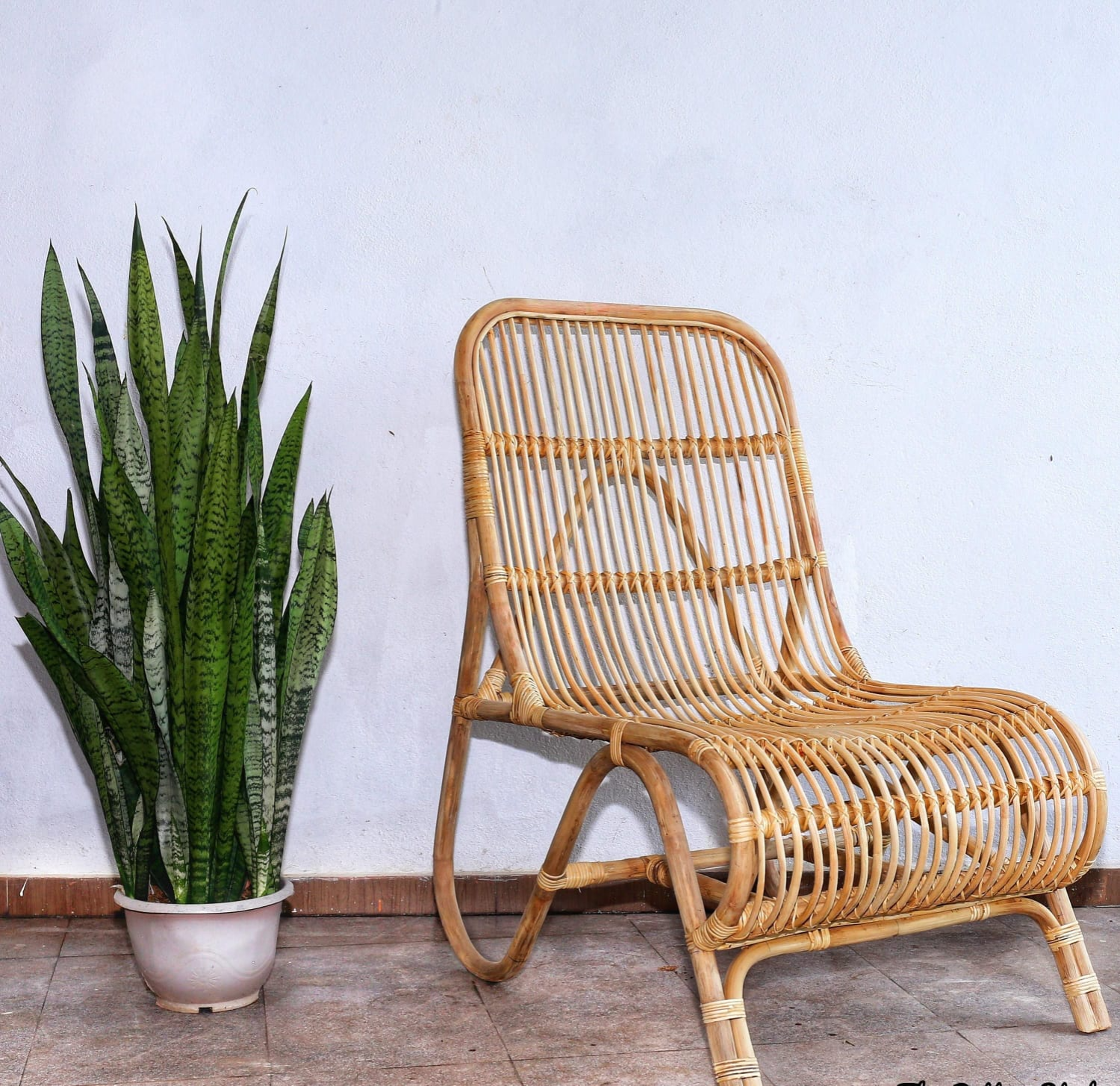 A stylish slanted rattan chair with clean lines and minimal design, ideal for living rooms, balconies, or resort seating.