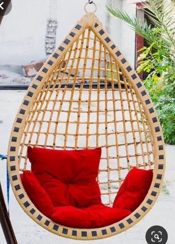 Tear-drop shaped hanging swing with cushion, perfect for balconies and gardens.