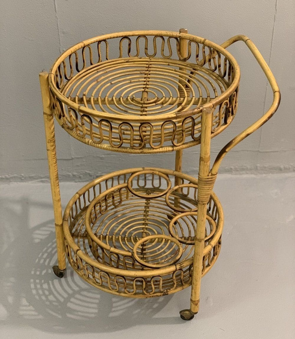 Two-Tier Vintage Rattan Trolley